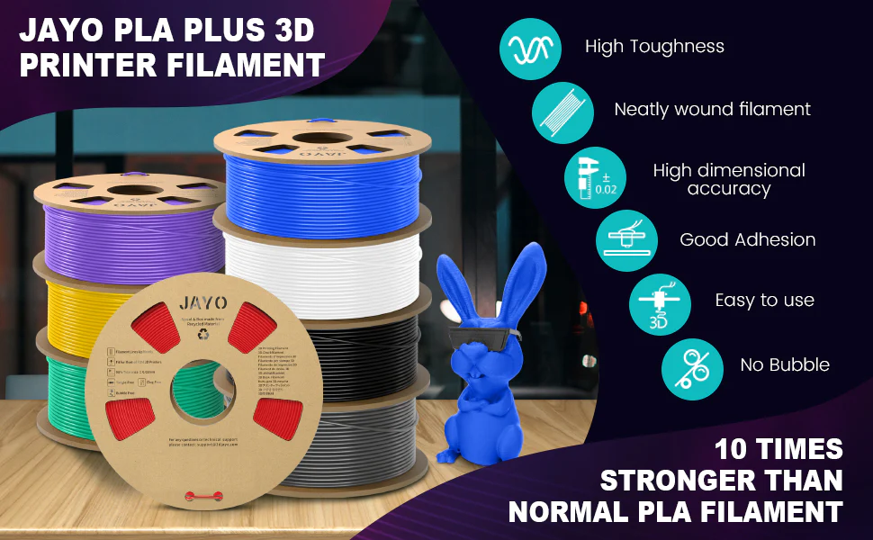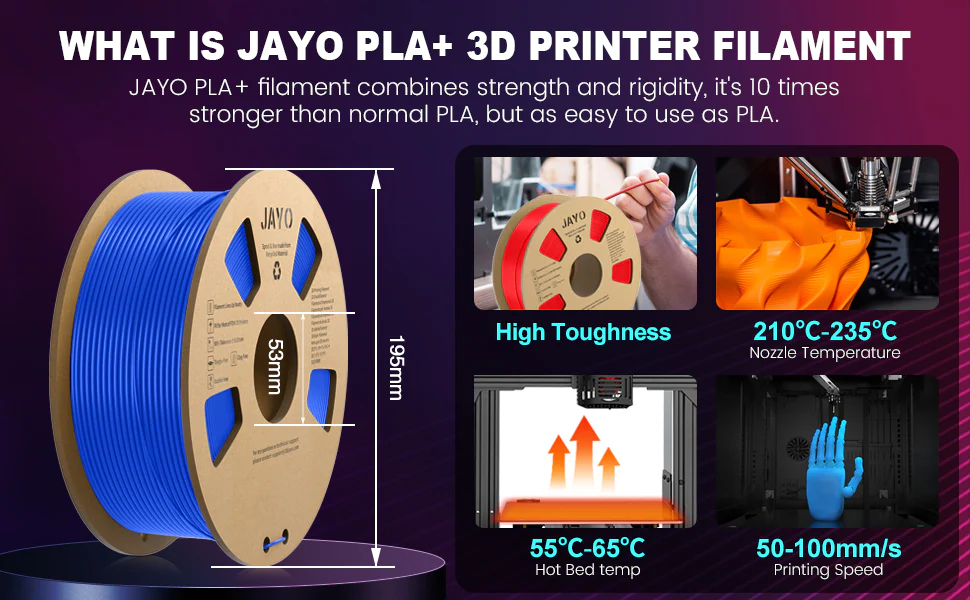 - 【Toughness Plus Filament】Compared with PLA filament, JAYO PLA+ FDM 3D Printer Filament has better toughness, higher strength, lower shrinkage, and lower warping, meeting your demands for different printing projects and bringing you a high-quality printing experience.